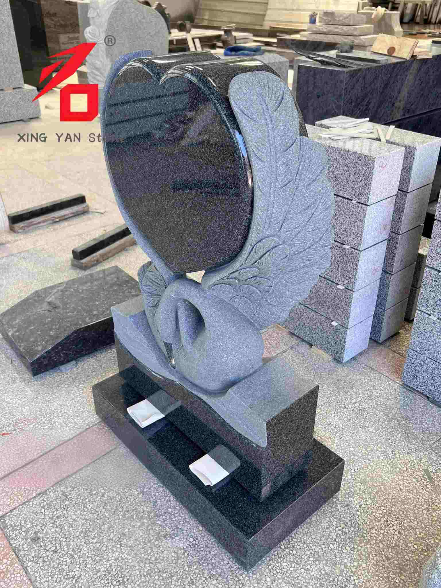 Design: Hoveddelen er et poleret sort hjerte, med naturtro svanevinger udskåret bagved. Svaneformen og hjertet symboliserer evig kærlighed og erindring for den afdøde. Det overordnede design er meget kunstnerisk, der adskiller det fra den monotone stil med traditionelle gravsten.