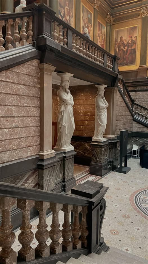Gamle opdagelser - Tilstedeværelsen af Cariatides -statuer og den overordnede arkitektoniske stil antyder kraftigt, at dette er et europæisk sted, muligvis i en stor by med et betydeligt kunst- eller historiemuseum.